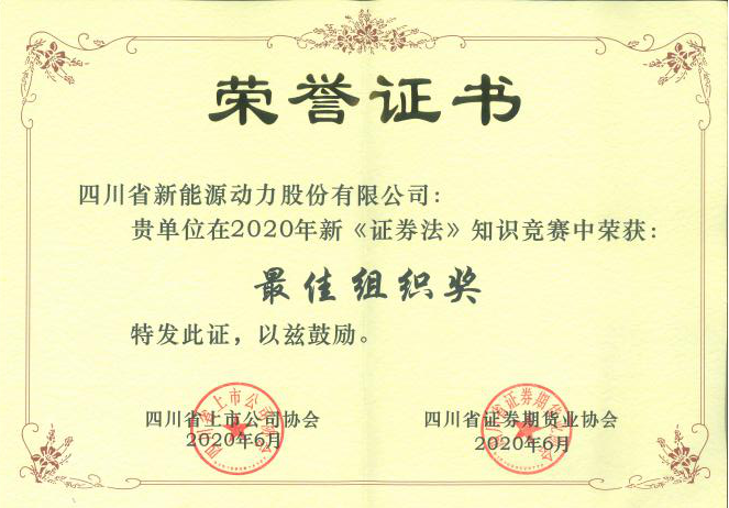 为进一步落实新《证券法》宣贯工作,四川省上市公司协会以“5.15全国投资者保护宣传日”为契机,开展了新《证券法》知识竞赛,澳门金沙赌场在本次知识竞赛中荣获最佳组织奖。