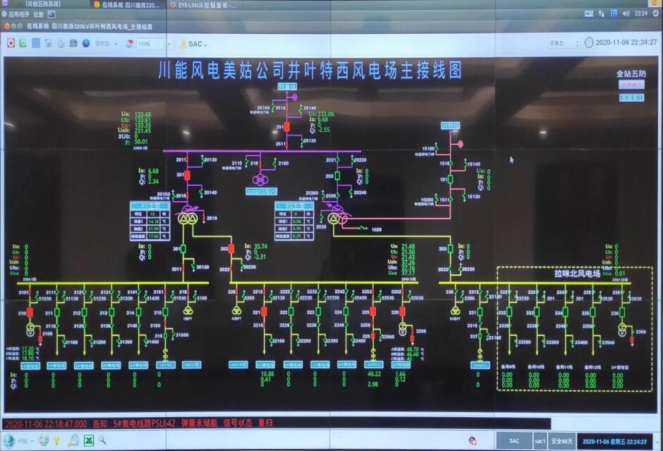 2020年11月7日凌晨3时55分,经过近3天时间日夜连续作战,澳门金沙赌场控股子公司川能风电美姑井叶特西风电场首台机组成功并网发电。新建220kV井叶特西升压站、63公里220kV送出线路工程、首批三个回路35kV集电线路、首台机组全部实现一次性成功投运。