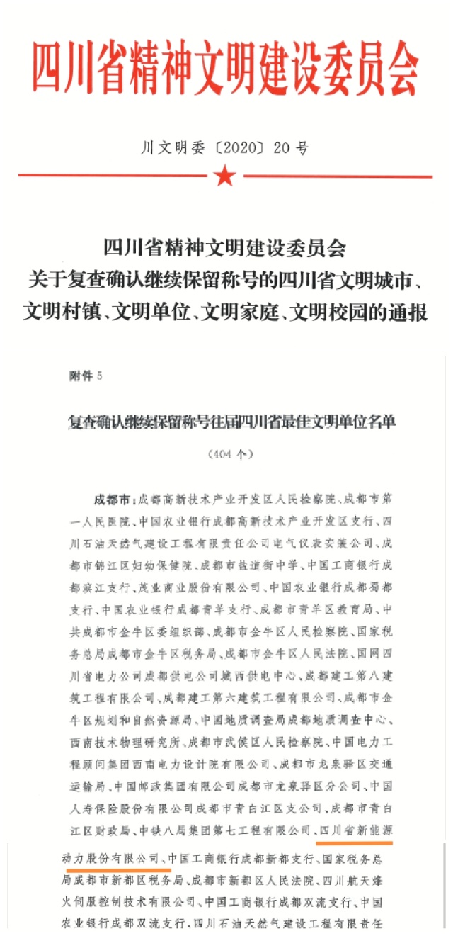 2020年12月28日,四川省精神文明建设表彰大会在成都召开,会上公布了《四川省精神文明建设委员会关于表彰第五届四川省文明城市、文明村镇、文明单位和第二届四川省文明家庭、文明校园及新一届四川省未成年人思想道德建设工作先进的决定》,澳门金沙赌场顺利通过2020年度省级文明单位复查,蝉联“四川省最佳文明单位”荣誉称号。