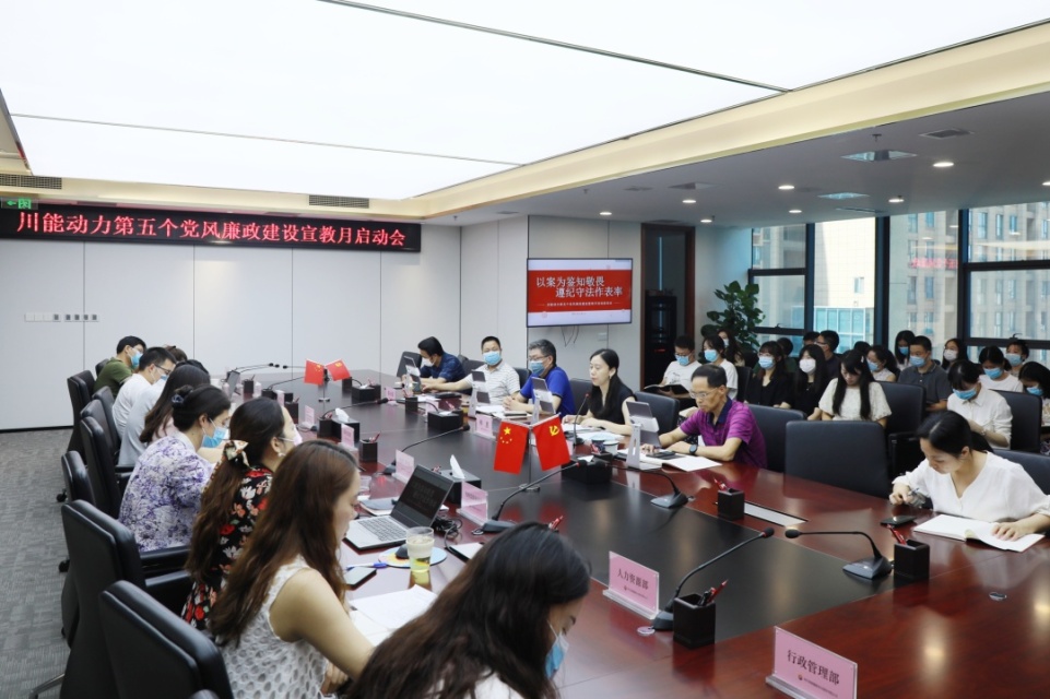 会上,纪委书记林惠宣读了《关于开展四川能投集团第五个党风廉政建设宣传教育月活动的通知》,并通过播放自制的小视频对本年度公司即将开展的宣教月活动进行了图文并茂的详细介绍。与会同志共同观看了由公司结合党史教育和“以案促改”自编自制、员工参与录制的“以案促改、警钟长鸣”警示教育片《新中国反腐“第一刀”——刘青山、张子善腐败案》,启动了宣教月警示教育第一课。