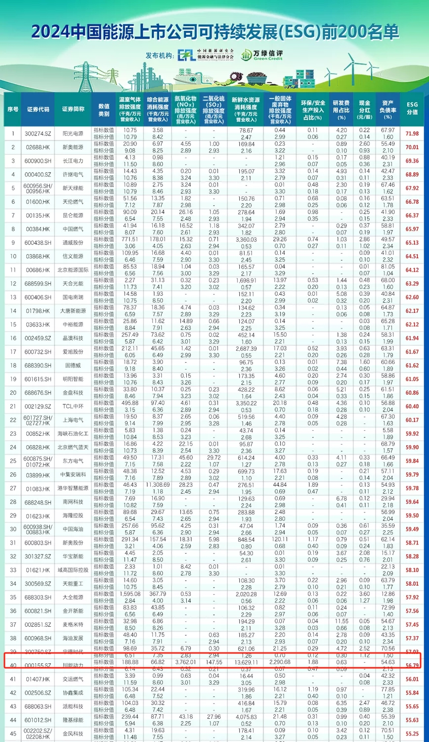 近日,中国能源研究会和北京万家绿色信用评级有限公司联合发布《2024中国能源上市公司可持续发展(ESG)报告》。澳门金沙赌场以其在新能源领域的优异表现,首次荣登2024中国能源上市公司ESG前200名单,位列第40位。