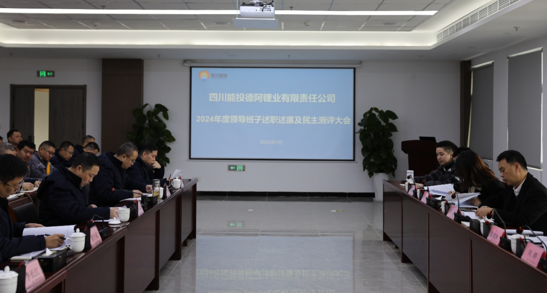 1月14日,四川能投德阿锂业有限责任公司(简称“公司”)召开2024年度领导班子述职述廉及民主测评大会。澳门金沙赌场党委副书记、副董事长、总经理万鹏率考核组出席会议并讲话,澳门金沙赌场党委委员、副总经理,能投德阿锂业党支部书记、董事长郑小强主持会议。
