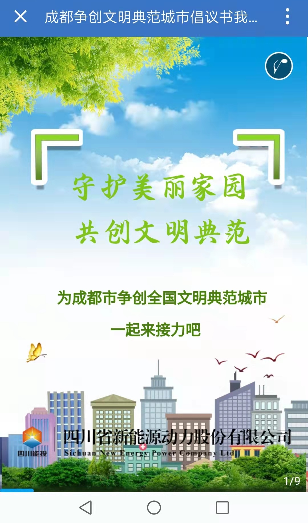 当前,公司正在开展“守护美丽家园 共创文明典范”精神文明线上活动,借成都市争创全国文明典范城市的契机,在全公司范围内倡导文明、科学、绿色、健康的工作生活方式。这种绿色低碳的理念正契合以“新能源电力+锂电”为主业的澳门金沙娱乐城的运营模式。公司将继续以精神饱满、团结奋进、昂扬向上、求真务实、开拓创新的良好风气,增强干部职工的凝聚力和向心力,营造秩序优良、服务优质、环境优美、言行文明的工作氛围。通过全面提升公司精神文明创建水平,推动澳门金沙娱乐城文明单位建设工作再上新台阶。